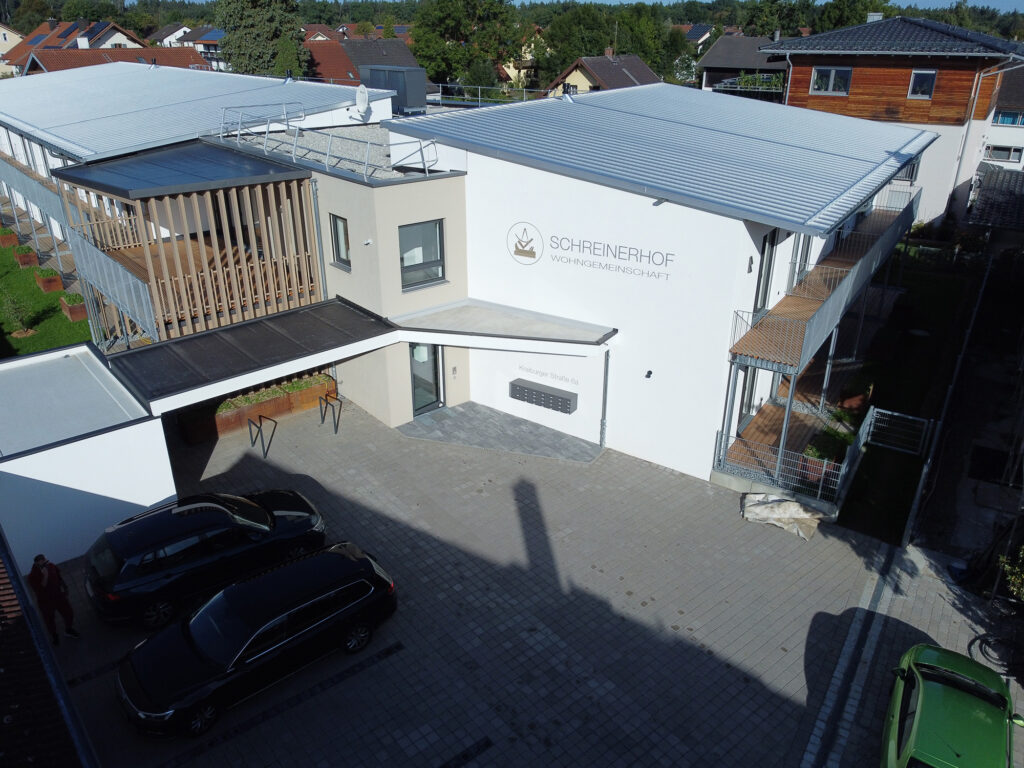 Die Schreinerhof-WG wurde im Juni 2025 fertiggestellt und ist unser jüngstes Referenzprojekt im Bereich des altersgerechten Wohnens. Auf einem 1.700 m² großen Grundstück im Dorfzentrum von Oberflossing in der Kraiburger Straße 6a, wurde eine moderne Wohnanlage für Senioren, die höchsten Ansprüchen an Komfort und Lebensqualität gerecht wird, projektiert und von uns realisiert.